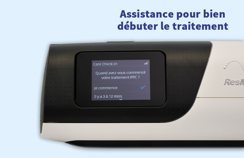 Vous profitez pendant 30 jours de l’assistance Care Check-In qui vous garantit des premiers pas sereins dans le traitement. L’appareil AirSense 11 AutoSet vous guide vers le réglage parfait avec des conseils sur mesure, élaborés sur la base de vos réponses à quelques questions simples. Vous pouvez ainsi ajuster les paramètres de l’appareil de manière optimale à vos besoins spécifiques et vous accoutumer plus rapidement au traitement.