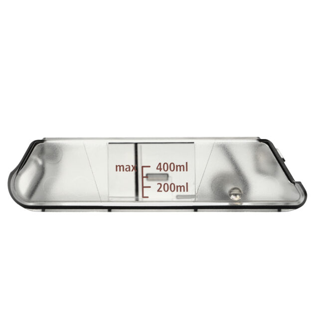 Appuyez sur le bouton situé sur le côté gauche de votre appareil de la gamme prismaLINE et retirez le capot latéral. Prenez ensuite l’humidificateur prismaAQUA et ouvrez le réservoir en tirant vers le haut l’ouverture située à l’arrière. Remplissez le réservoir jusqu’au repère de niveau d’eau maximum. Refermez l’humidificateur et insérez-le dans l’emplacement réservé sur le côté gauche de votre appareil de la gamme prismaLINE.